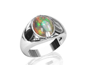 10x8mm Solid Natural Australian Black Opal Ring in 925 Sterling Silver